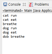 cat.breath() 실행 시 interface에 default로 정의한 메소드가 호출되고, dog.breath() 실행 시에는 override한 메소드가 호출됨을 확인할 수 있다.