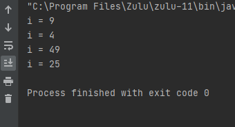 squaresList.stream().forEach(i -> System.out.println("i = " + i));