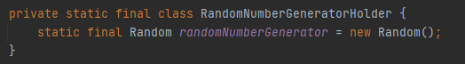 RandomNumberGeneratorHolder 클래스 안에 정적 변수 randomNumberGenerator가 있음을 확인할 수 있다.