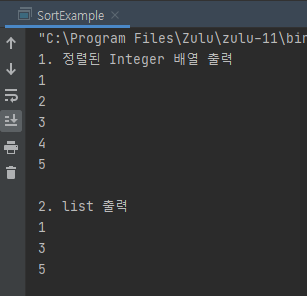 System.out.println("1. 정렬된 Integer 배열 출력");