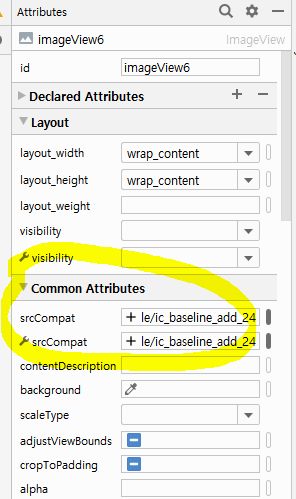 4. UI가 정의된 xml에서 Image View를 사용해서 아이콘 사용